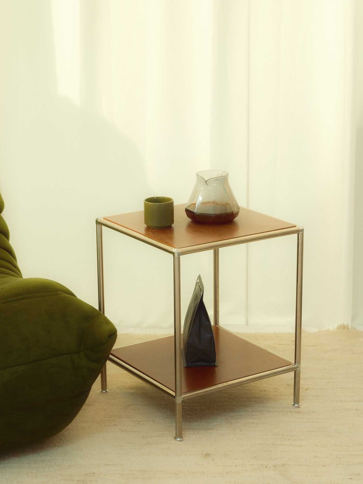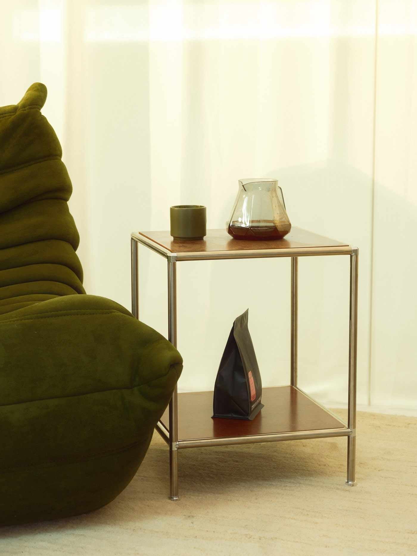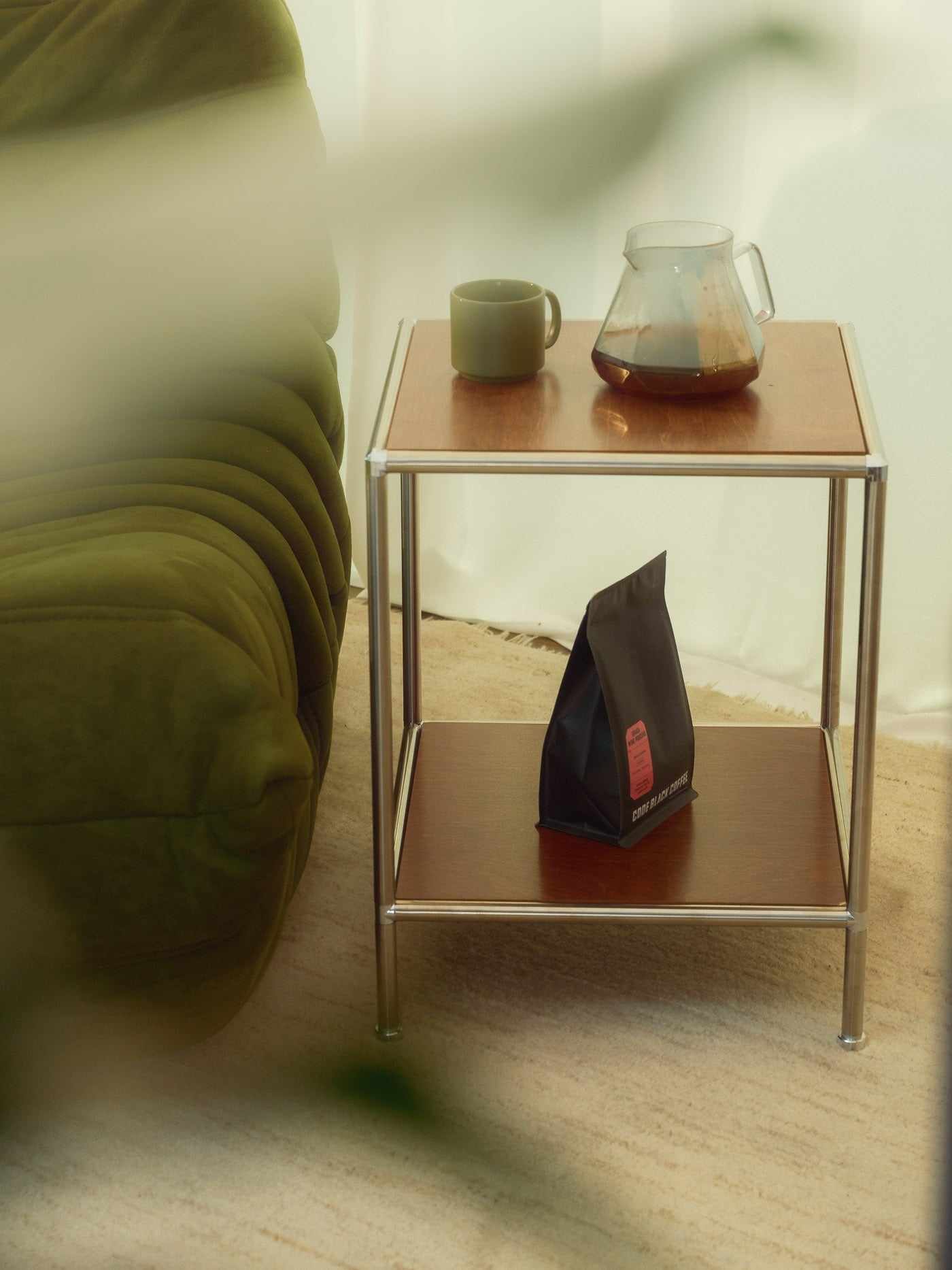 Crafted with high-quality birchwood panels and durable stainless steel connectors, this shelving unit combines natural warmth with sleek, modern design. Its low-profile silhouette makes it a versatile addition to any room.