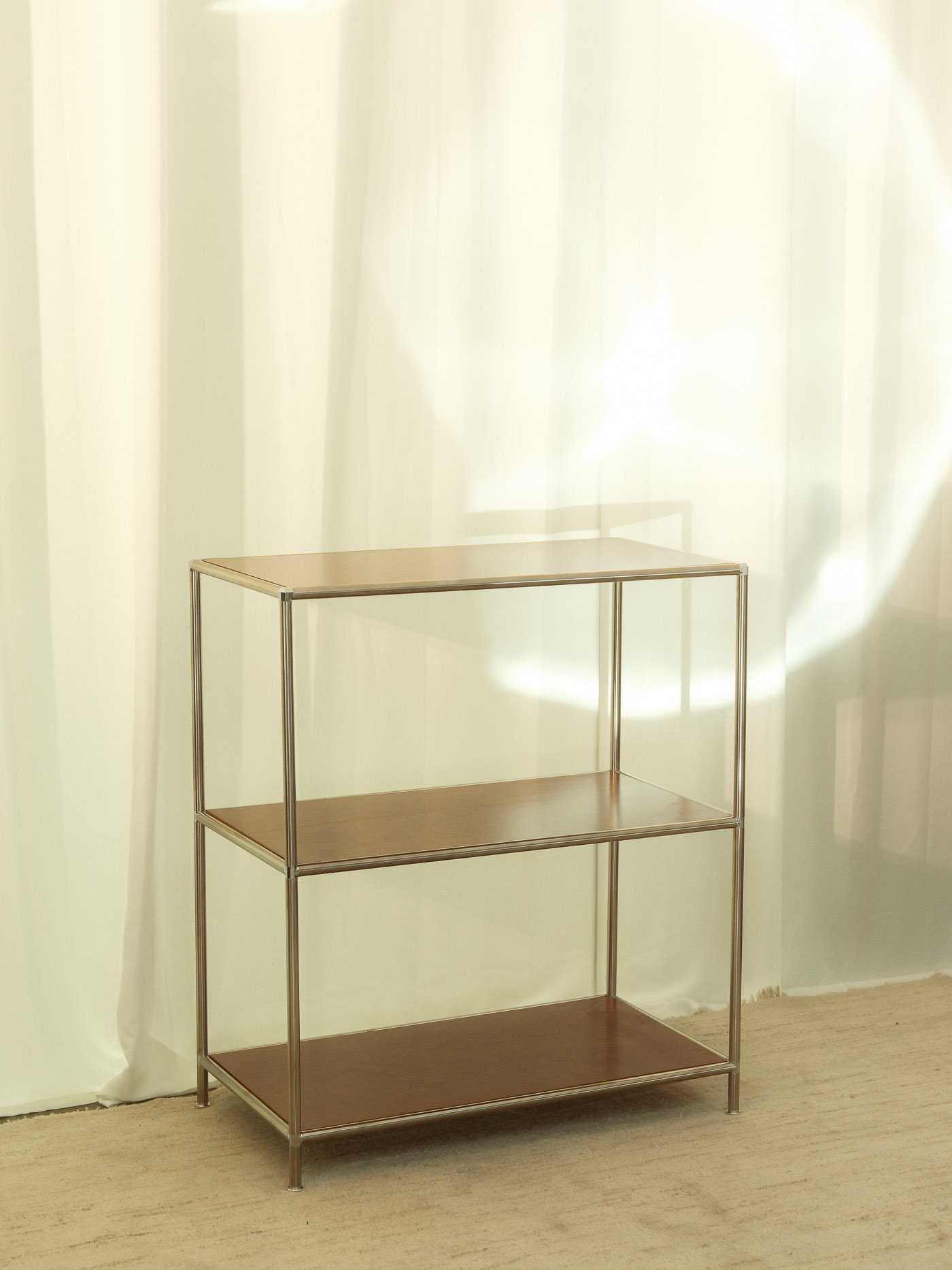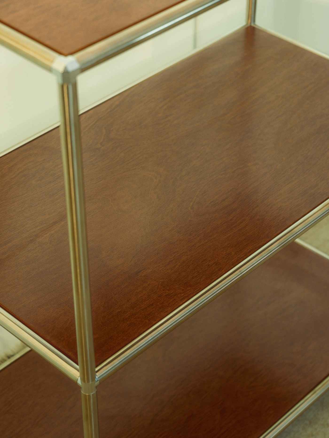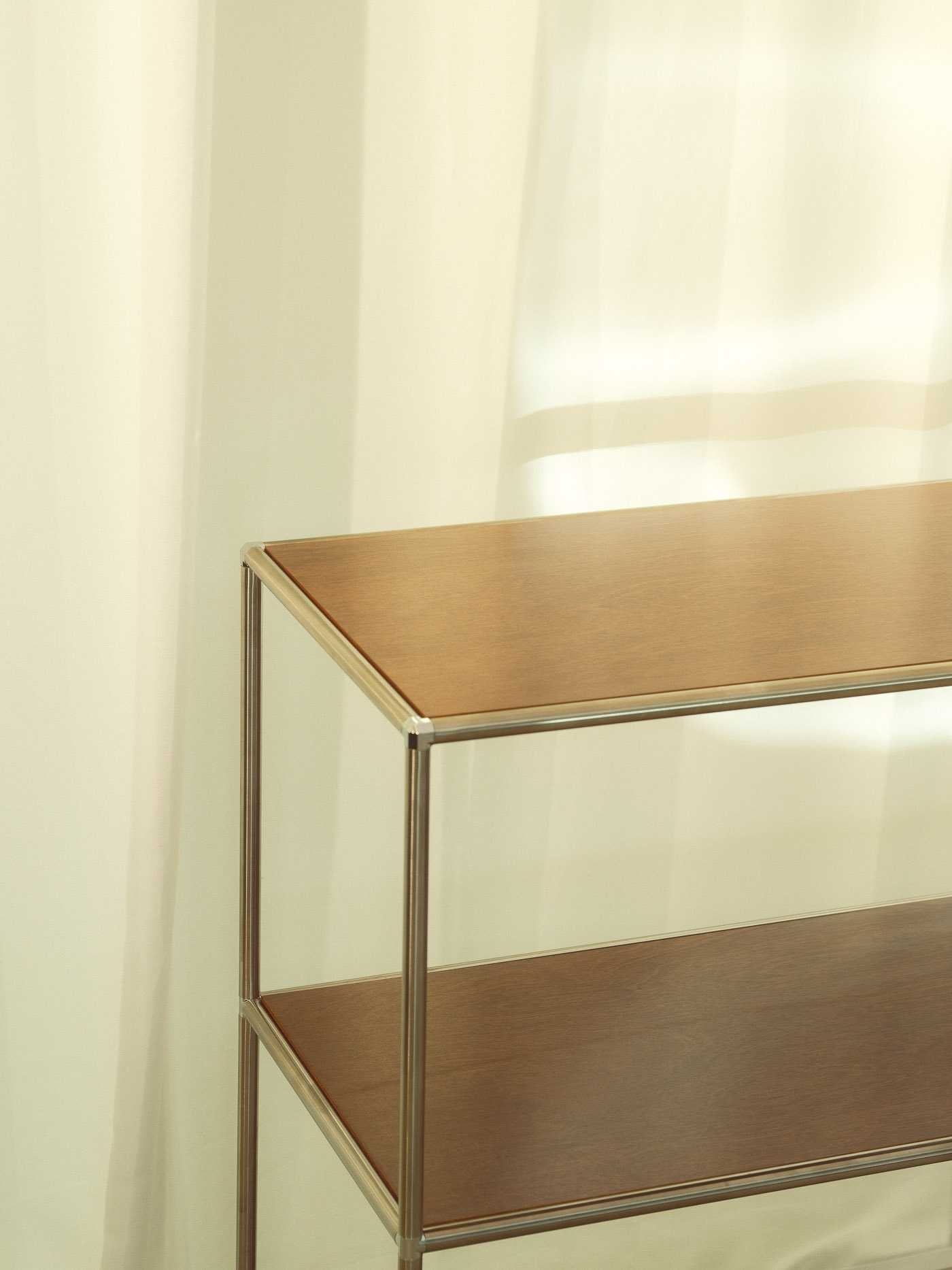 Crafted with high-quality birchwood panels and durable stainless steel connectors, this shelving unit combines natural warmth with sleek, modern design. Its low-profile silhouette makes it a versatile addition to any room.