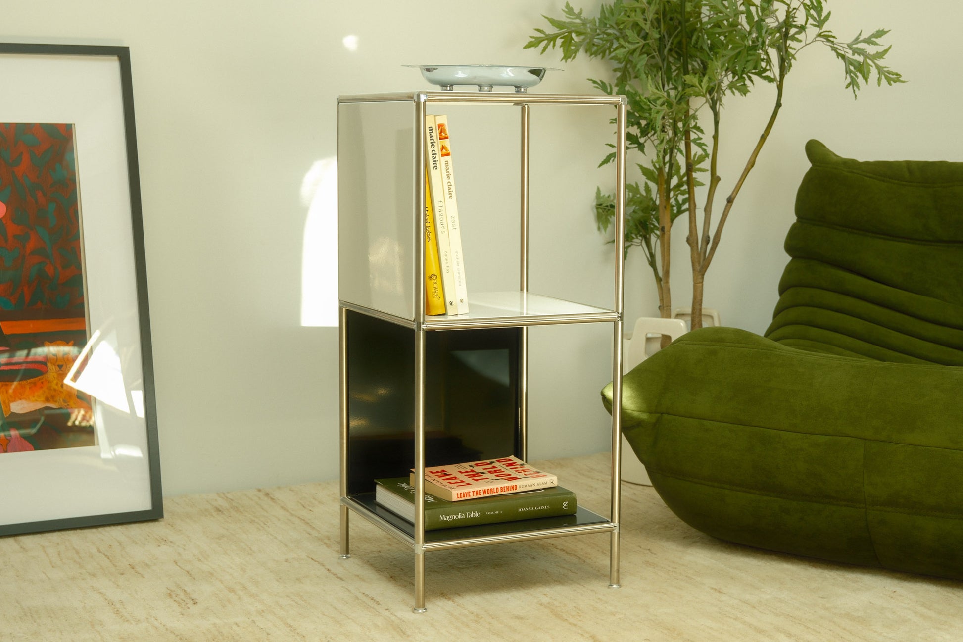 A perfect mix of practicality and modern minimalism. This durable steel shelf features a sleek, low-profile design that complements any interior. It’s perfectly proportioned for any part of your home and is super versatile and spacious.